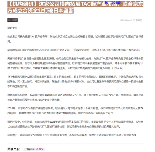 CLSMA to 财联社 10合一 实时滚动更新中文 · 8 hours ago12:50【机构调研】这家公司横向拓展TAC膜产业布局,联合京东方成立合资企业打破日本垄断imagemessage-square0linkfedilinkarrow-up11arrow-down10