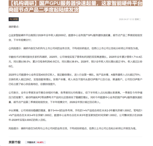 CLSMA to 财联社 10合一 实时滚动更新中文 · 6 hours ago12:32【机构调研】国产GPU服务器快速起量,这家智能硬件平台商超节点产品二季度起陆续发货imagemessage-square0linkfedilinkarrow-up11arrow-down10