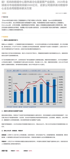 19:10【电报解读】OpenAI拟在加拿大布局人工智能数据中心产能!机构称数据中心散热液冷化是重要产业趋势,2025年全球液冷市场规模将突破2000亿元,这家公司提供液冷数据中心全生命周期整体解决方案