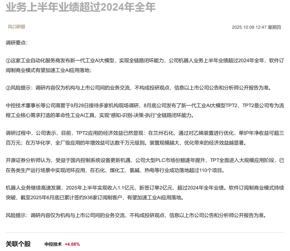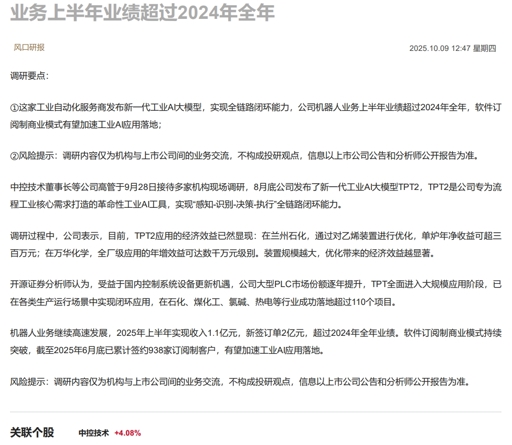 CLSMA to 财联社 10合一 实时滚动更新中文 · 11 days ago12:47 【机构调研】这家工业AI服务商发布新一代大模型,机器人业务上半年业绩超过2024年全年imagemessage-square0linkfedilinkarrow-up11arrow-down10