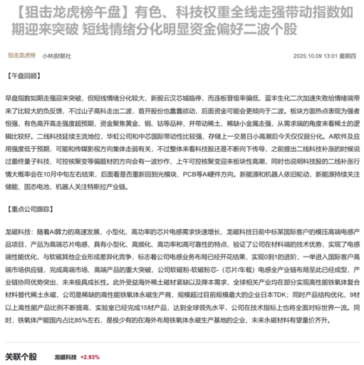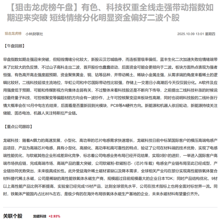 CLSMA to 财联社 10合一 实时滚动更新中文 · 11 days ago13:01 【狙击龙虎榜午盘】有色、科技权重全线走强带动指数如期迎来突破 短线情绪分化明显资金偏好二波个股imagemessage-square0linkfedilinkarrow-up11arrow-down10