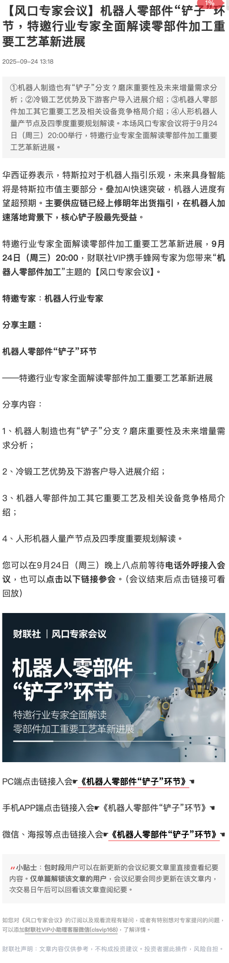 CLSMA to 财联社 10合一 实时滚动更新中文 · 25 days ago13:18【风口专家会议】机器人零部件“铲子”环节,特邀行业专家全面解读零部件加工重要工艺革新进展imagemessage-square0linkfedilinkarrow-up11arrow-down10
