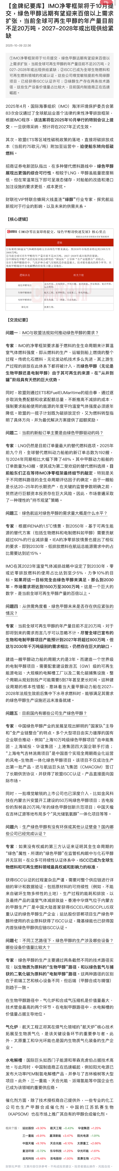 CLSMA to 财联社 10合一 实时滚动更新中文 · 10 days ago22:36【金牌纪要库】IMO净零框架将于10月提交,绿色甲醇远期有望迎来百倍以上需求扩张,当前全球可再生甲醇的年产量目前不足20万吨,2027-2028年或出现供给紧缺imagemessage-square0linkfedilinkarrow-up11arrow-down10