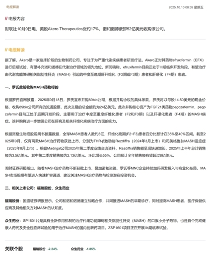 CLSMA to 财联社 10合一 实时滚动更新中文 · 10 days ago08:39 【电报解读】诺和诺德豪掷52亿美元收购MASH药企,机构称MASH市场规模有望进入快速扩容通道,这家公司与诺和诺德建立战略合作推动MASH的早期诊疗imagemessage-square0linkfedilinkarrow-up11arrow-down10