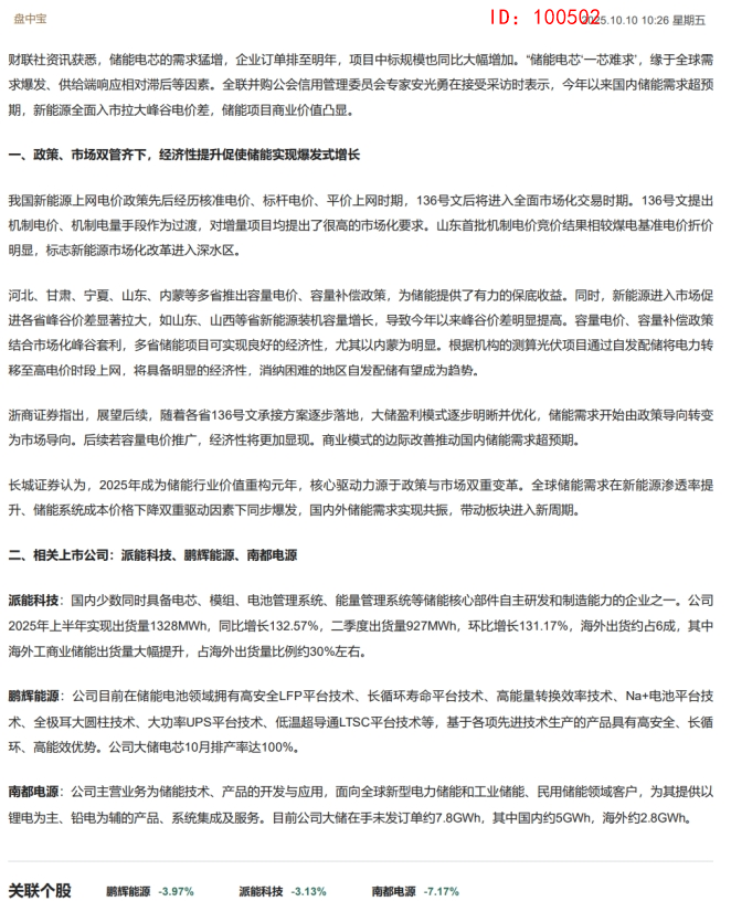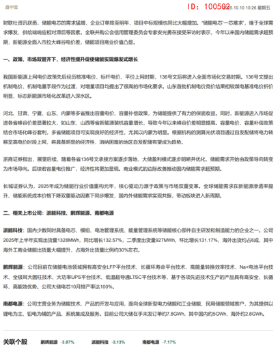 10:26 【盘中宝】储能电芯企业订单已排至明年!政策、市场双管齐下,经济性提升促使储能实现爆发式增长,这家公司大储电芯10月排产率达100%