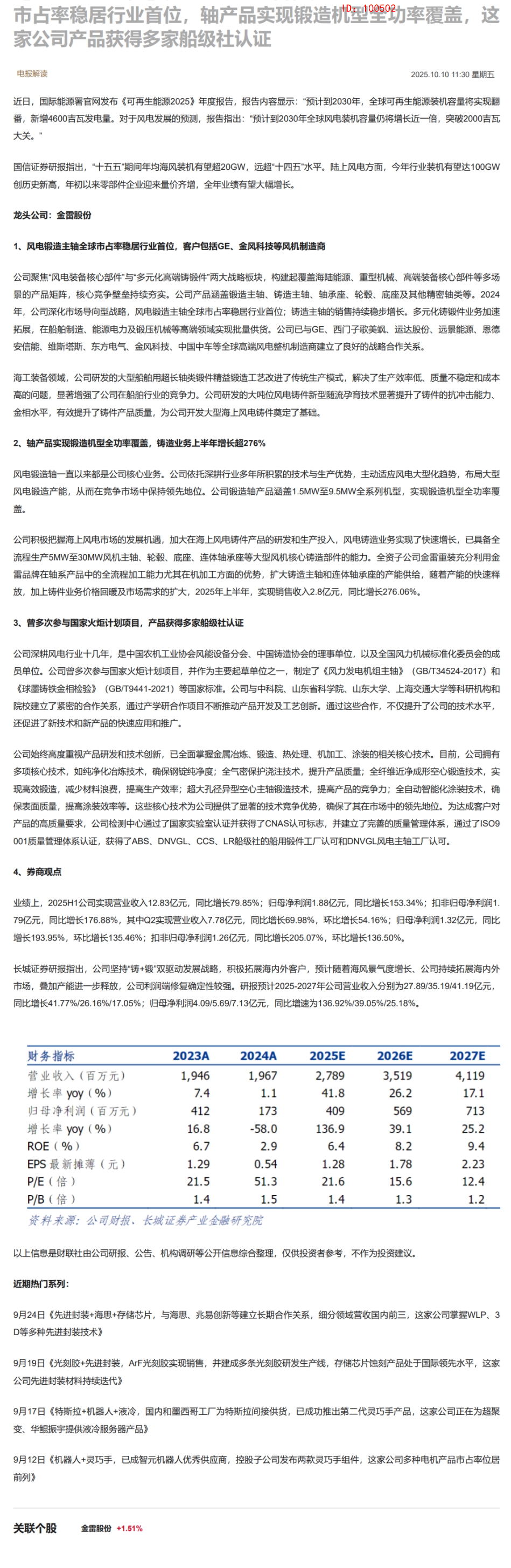 CLSMA to 财联社 10合一 实时滚动更新中文 · 11 days ago11:30 【掘金行业龙头】风电+海工装备,风电领域细分产品全球市占率稳居行业首位,轴产品实现锻造机型全功率覆盖,这家公司产品获得多家船级社认证imagemessage-square0linkfedilinkarrow-up11arrow-down10