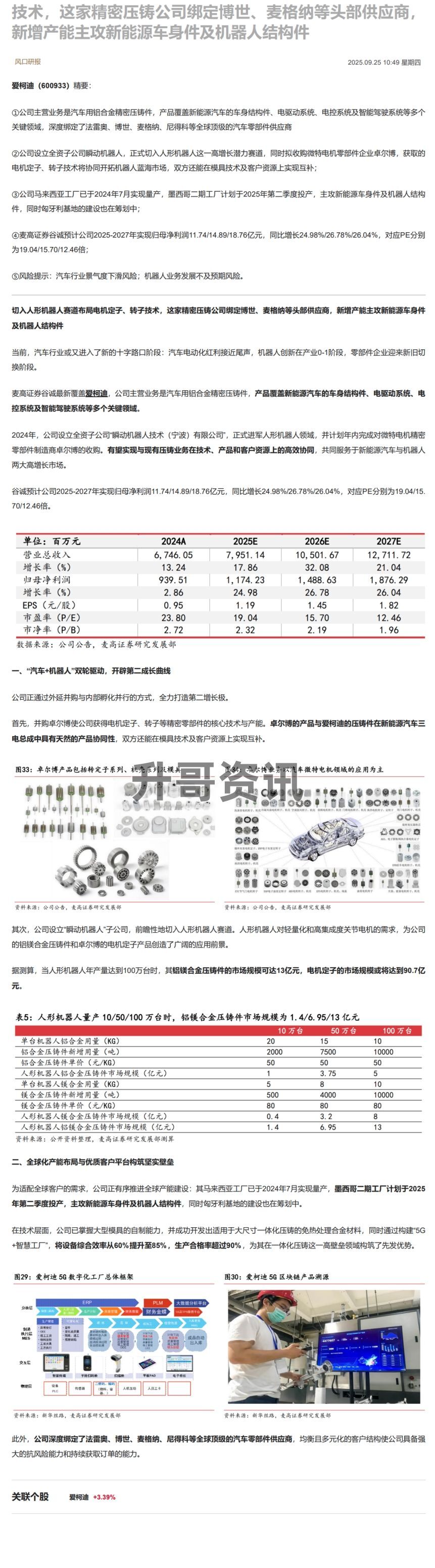 CLSMA to 财联社 10合一 实时滚动更新中文 · 25 days ago10:49【风口研报·公司】切入人形机器人赛道布局电机定子、转子技术,这家精密压铸公司绑定博世、麦格纳等头部供应商,新增产能主攻新能源车身件及机器人结构件imagemessage-square0linkfedilinkarrow-up11arrow-down10