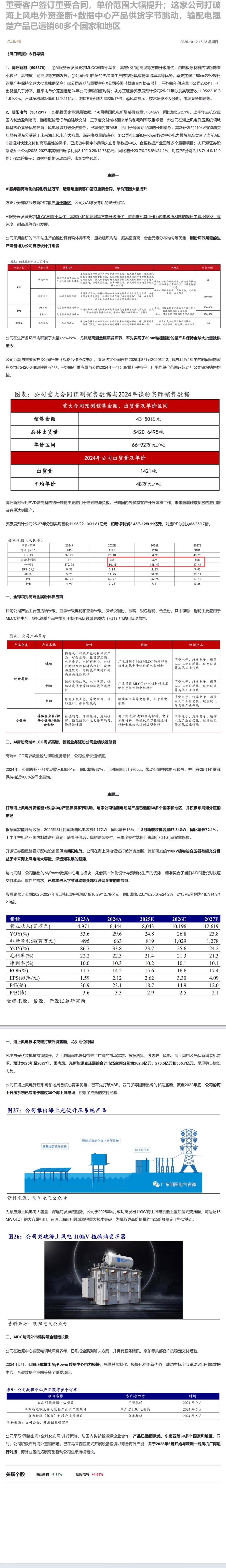 16:23【风口研报·公司】AI服务器高端化的隐形受益冠军,近期与重要客户签订重要合同,单价范围大幅提升;这家公司打破海上风电外资垄断+数据中心产品供货字节跳动,输配电翘楚产品已远销60多个国家和地区