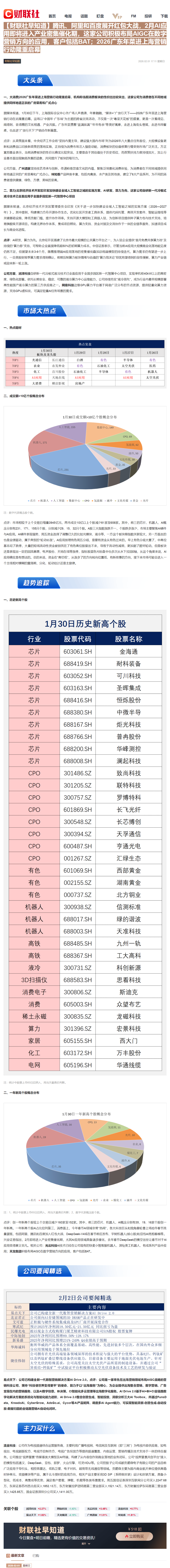 CLSMA to 财联社 10合一 实时滚动更新中文 · 30 days ago17:11【财联社早知道】腾讯、阿里和百度展开红包大战,2月AI应用即将进入产业密集催化期,这家公司积极布局AIGC在数字营销方向的应用,客户包括BAT;2026广东年菜进上海营销行动隆重启幕imagemessage-square0linkfedilinkarrow-up11arrow-down10