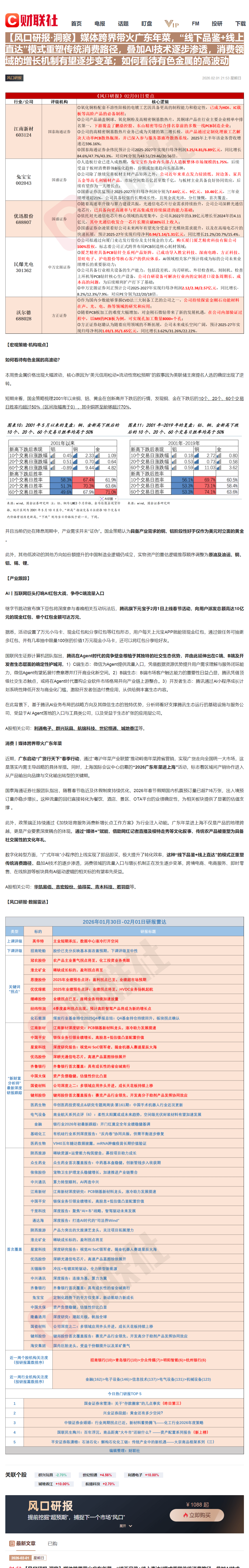 CLSMA to 财联社 10合一 实时滚动更新中文 · 29 days ago21:53【风口研报·洞察】媒体跨界带火广东年菜,“线下品鉴+线上直达”模式重塑传统消费路径,叠加AI技术逐步渗透,消费领域的增长机制有望逐步变革;如何看待有色金属的高波动imagemessage-square0linkfedilinkarrow-up11arrow-down10