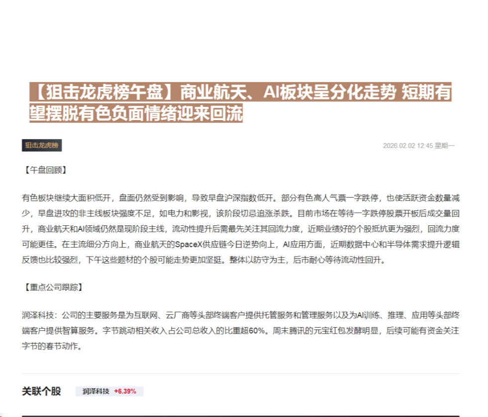 CLSMA to 财联社 10合一 实时滚动更新中文 · 29 days ago12:45【狙击龙虎榜午盘】商业航天、AI板块呈分化走势 短期有望摆脱有色负面情绪迎来回流imagemessage-square0linkfedilinkarrow-up11arrow-down10