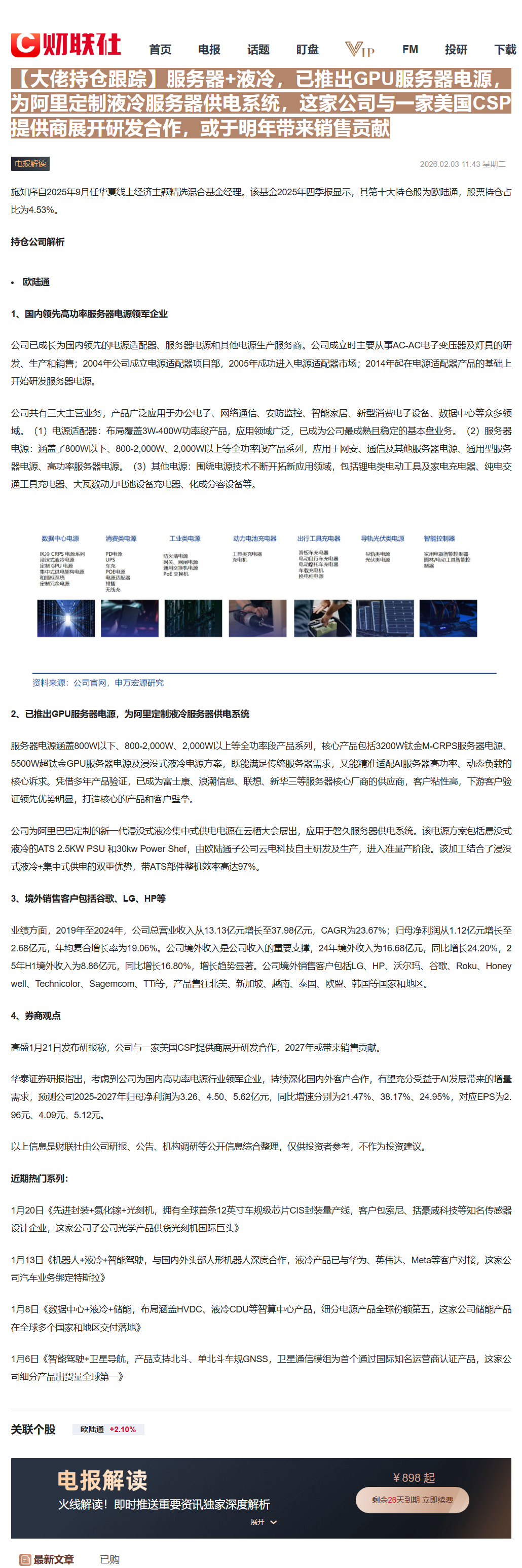 arrow-up11arrow-down1image11:43【大佬持仓跟踪】服务器+液冷,已推出GPU服务器电源,为阿里定制液冷服务器供电系统,这家公司与一家美国CSP提供商展开研发合作,或于明年带来销售贡献CLSMA to 财联社 10合一 实时滚动更新中文 · 28 days agomessage-square0linkfedilink