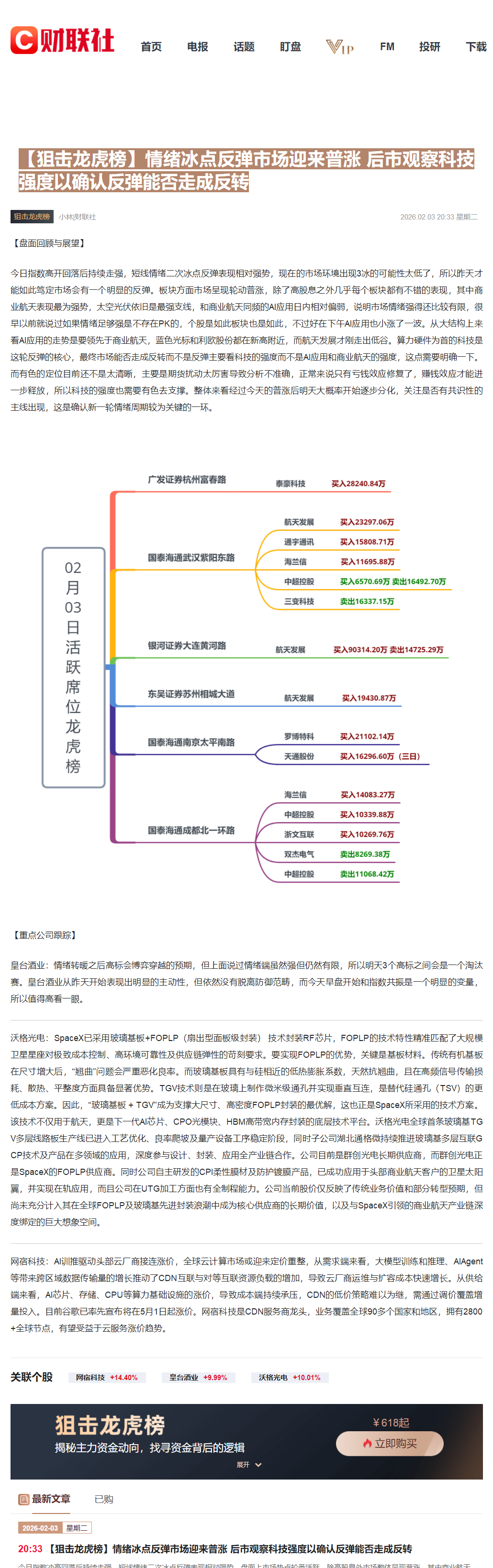 20:33【狙击龙虎榜】情绪冰点反弹市场迎来普涨 后市观察科技强度以确认反弹能否走成反转
