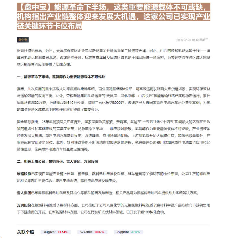 CLSMA to 财联社 10合一 实时滚动更新中文 · 12 hours ago10:40【盘中宝】能源革命下半场,这类重要能源载体不可或缺,机构指出产业链整体迎来发展大机遇,这家公司已实现产业链关键环节卡位布局imagemessage-square0linkfedilinkarrow-up11arrow-down10