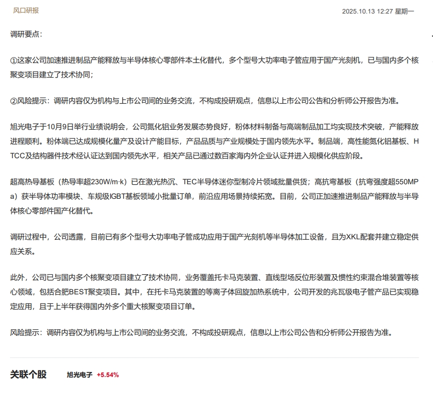 CLSMA to 财联社 10合一 实时滚动更新中文 · 7 days ago12:27 【机构调研】这家公司已有多个型号大功率电子管应用于国产光刻机等半导体加工设备imagemessage-square0linkfedilinkarrow-up11arrow-down10