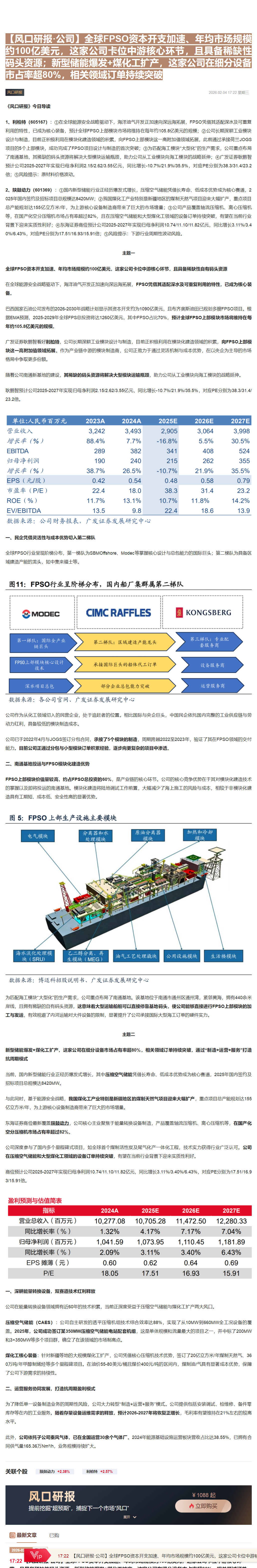 CLSMA to 财联社 10合一 实时滚动更新中文 · 14 hours ago17:22【风口研报·公司】全球FPSO资本开支加速、年均市场规模约100亿美元,这家公司卡位中游核心环节,且具备稀缺性码头资源;新型储能爆发+煤化工扩产,这家公司在细分设备市占率超80%,相关领域订单持续突破imagemessage-square0linkfedilinkarrow-up11arrow-down10