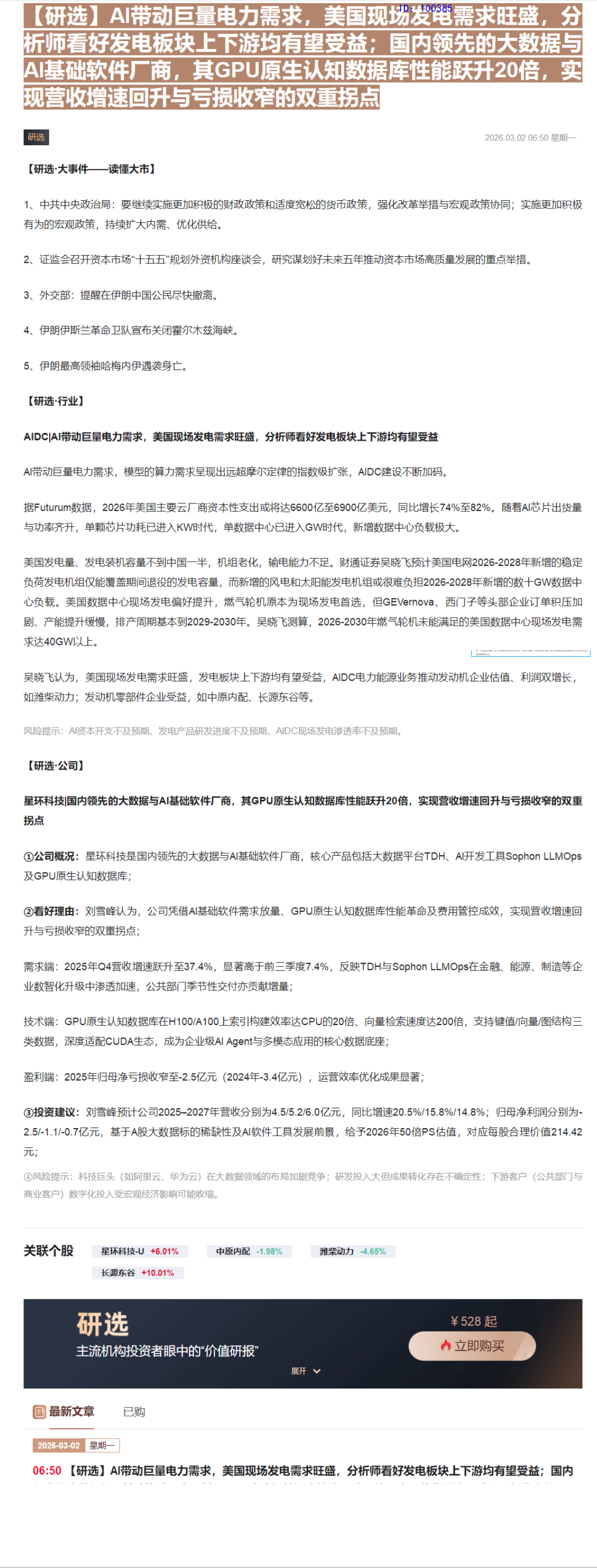 CLSMA to 财联社 10合一 实时滚动更新中文 · 3 hours ago06:50【研选】AI带动巨量电力需求,美国现场发电需求旺盛,分析师看好发电板块上下游均有望受益;国内领先的大数据与AI基础软件厂商,其GPU原生认知数据库性能跃升20倍,实现营收增速回升与亏损收窄的双重拐点imagemessage-square0linkfedilinkarrow-up11arrow-down10