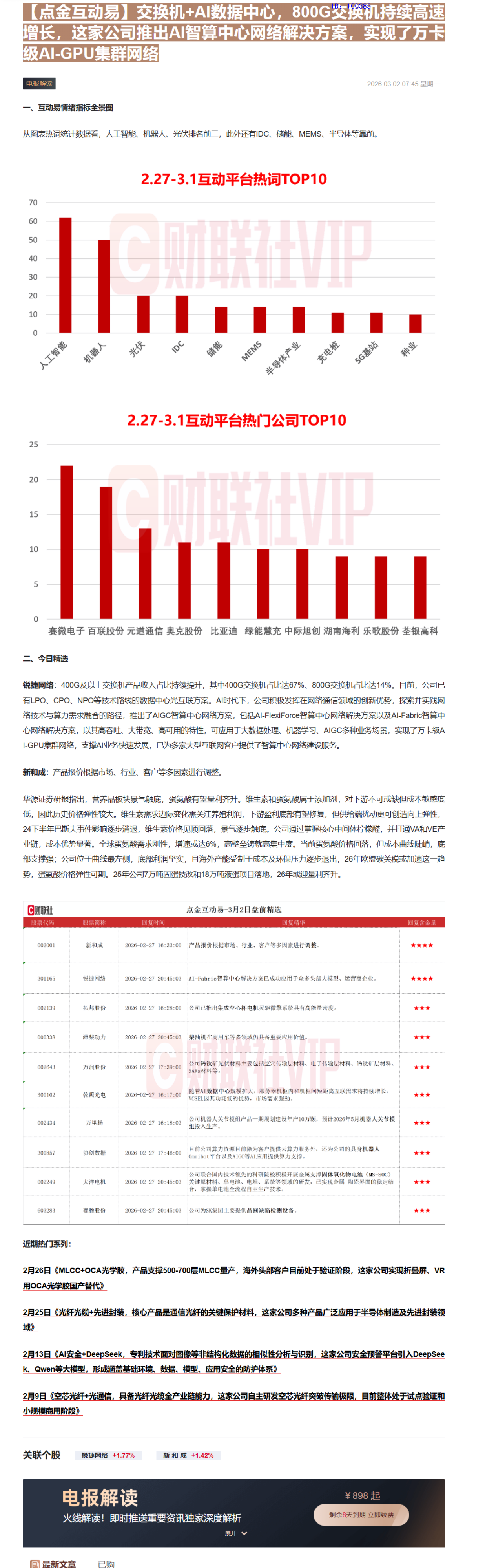 CLSMA to 财联社 10合一 实时滚动更新中文 · 3 hours ago07:45【点金互动易】交换机+AI数据中心,800G交换机持续高速增长,这家公司推出AI智算中心网络解决方案,实现了万卡级AI-GPU集群网络imagemessage-square0linkfedilinkarrow-up11arrow-down10