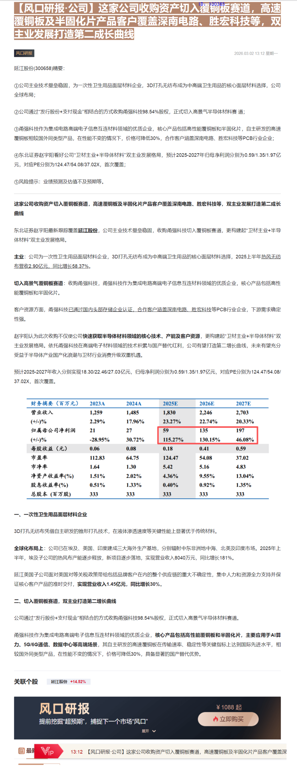arrow-up11arrow-down1image13:12【风口研报·公司】这家公司收购资产切入覆铜板赛道,高速覆铜板及半固化片产品客户覆盖深南电路、胜宏科技等,双主业发展打造第二成长曲线CLSMA to 财联社 10合一 实时滚动更新中文 · 2 hours agomessage-square0linkfedilink