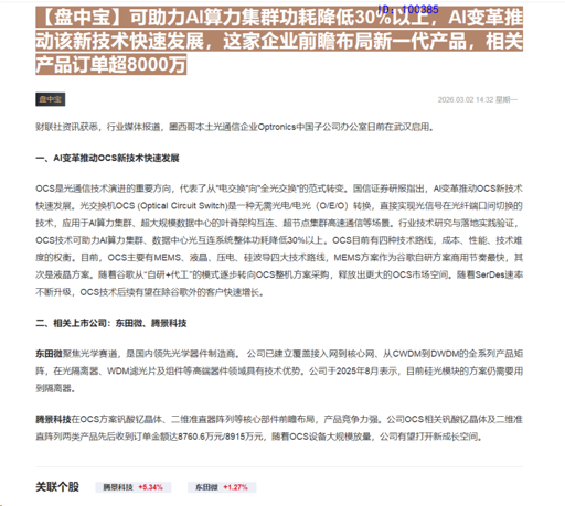 CLSMA to 财联社 10合一 实时滚动更新中文 · 2 hours ago14:32【盘中宝】可助力AI算力集群功耗降低30%以上,AI变革推动该新技术快速发展,这家企业前瞻布局新一代产品,相关产品订单超8000万imagemessage-square0linkfedilinkarrow-up11arrow-down10