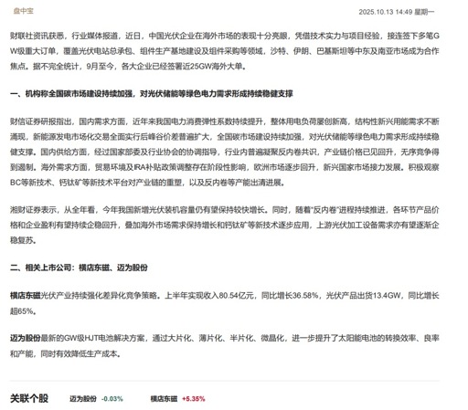 14:49 【盘中宝】接连签下多笔重大订单,机构称市场建设持续加强对该行业需求形成持续稳健支撑,这家企业上半年相关业务收入同比增近40%