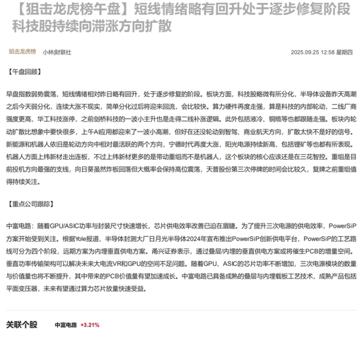 12:58【狙击龙虎榜午盘】短线情绪略有回升处于逐步修复阶段 科技股持续向滞涨方向扩散