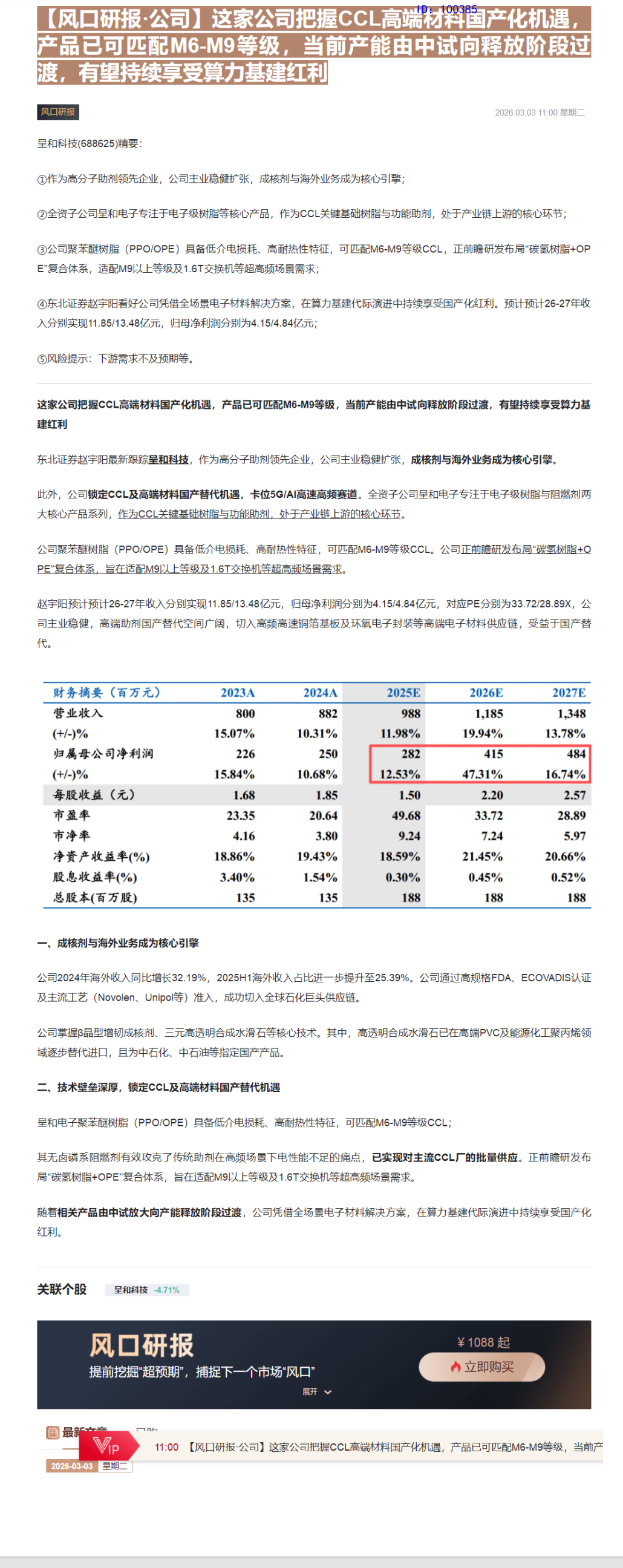 CLSMA to 财联社 10合一 实时滚动更新中文 · 2 hours ago11:00【风口研报·公司】这家公司把握CCL高端材料国产化机遇,产品已可匹配M6-M9等级,当前产能由中试向释放阶段过渡,有望持续享受算力基建红利imagemessage-square0linkfedilinkarrow-up11arrow-down10