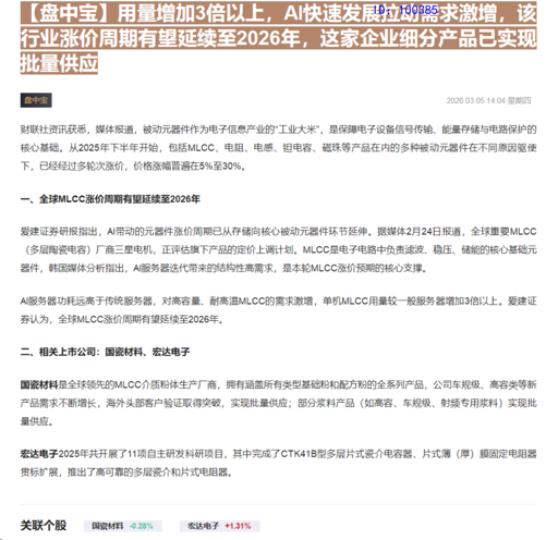 CLSMA to 财联社 10合一 实时滚动更新中文 · 3 hours ago14:04【盘中宝】用量增加3倍以上,AI快速发展拉动需求激增,该行业涨价周期有望延续至2026年,这家企业细分产品已实现批量供应imagemessage-square0linkfedilinkarrow-up11arrow-down10