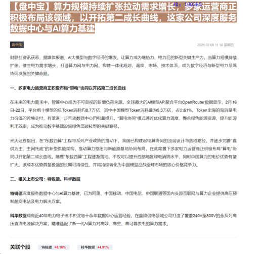 CLSMA to 财联社 10合一 实时滚动更新中文 · 12 hours ago11:10【盘中宝】算力规模持续扩张拉动需求增长,多家运营商正积极布局该领域,以开拓第二成长曲线,这家公司深度服务数据中心与AI算力基建imagemessage-square0linkfedilinkarrow-up11arrow-down10