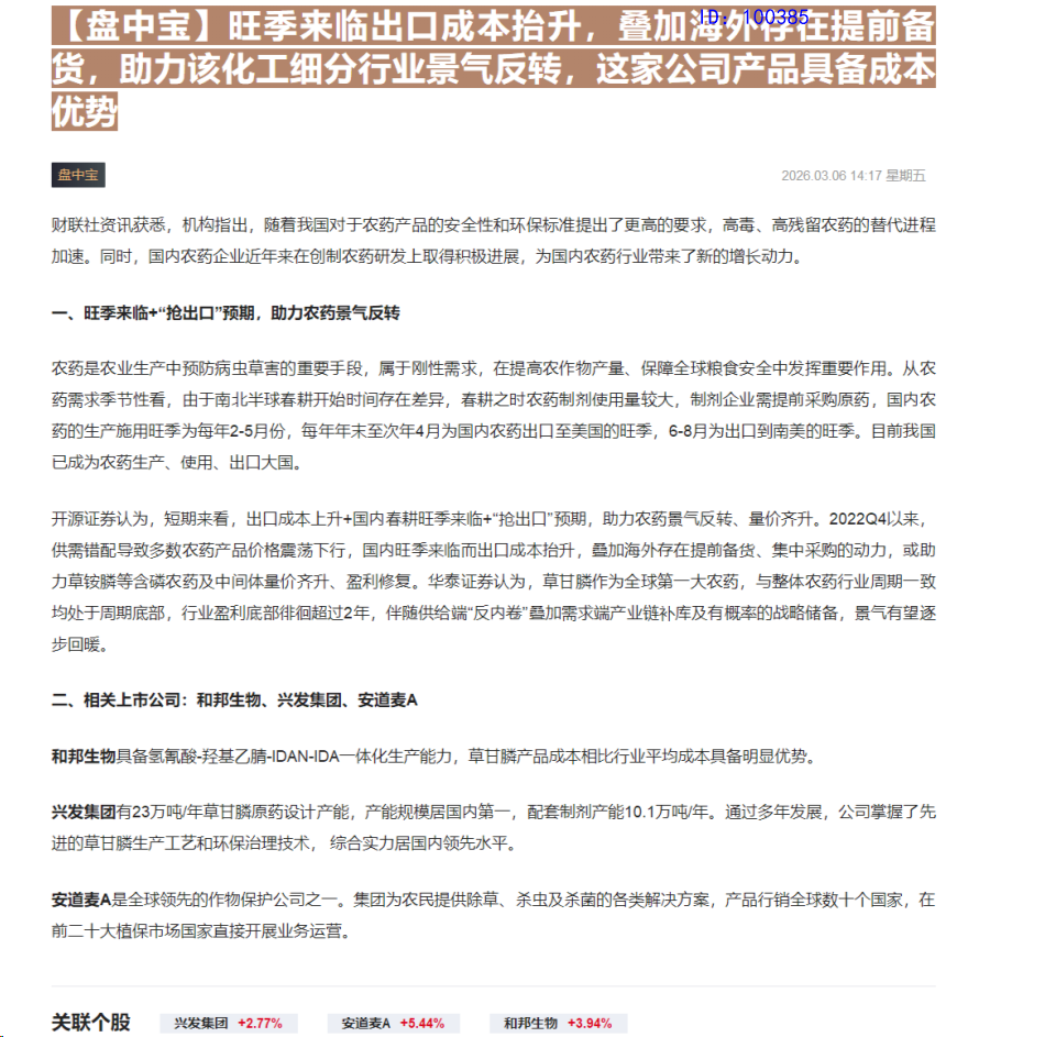 CLSMA to 财联社 10合一 实时滚动更新中文 · 9 hours ago14:17【盘中宝】旺季来临出口成本抬升,叠加海外存在提前备货,助力该化工细分行业景气反转,这家公司产品具备成本优势imagemessage-square0linkfedilinkarrow-up11arrow-down10