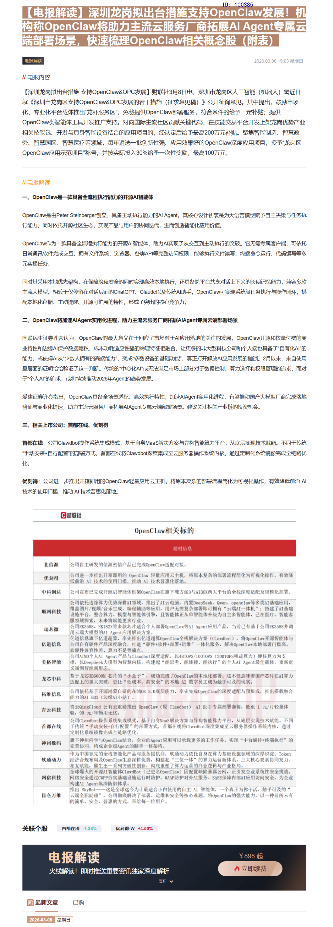 CLSMA to 财联社 10合一 实时滚动更新中文 · 3 days ago19:03【电报解读】深圳龙岗拟出台措施支持OpenClaw发展!机构称OpenClaw将助力主流云服务厂商拓展AI Agent专属云端部署场景,快速梳理OpenClaw相关概念股(附表)imagemessage-square0linkfedilinkarrow-up11arrow-down10