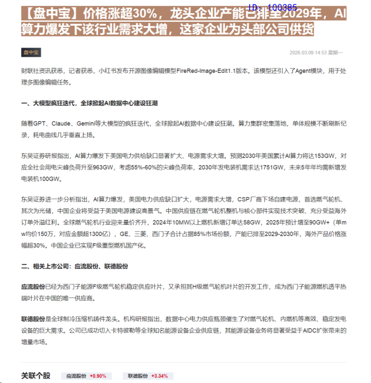 CLSMA to 财联社 10合一 实时滚动更新中文 · 8 hours ago14:53【盘中宝】价格涨超30%,龙头企业产能已排至2029年,AI算力爆发下该行业需求大增,这家企业为头部公司供货imagemessage-square0linkfedilinkarrow-up11arrow-down10