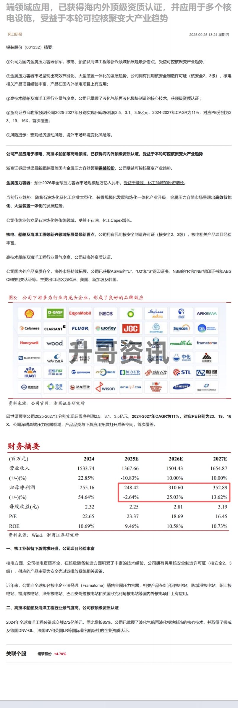 CLSMA to 财联社 10合一 实时滚动更新中文 · 25 days ago13:24【风口研报·公司】公司产品拓展核电、高技术船舶等新兴高端领域应用,已获得海内外顶级资质认证,并应用于多个核电设施,受益于本轮可控核聚变大产业趋势imagemessage-square0linkfedilinkarrow-up11arrow-down10
