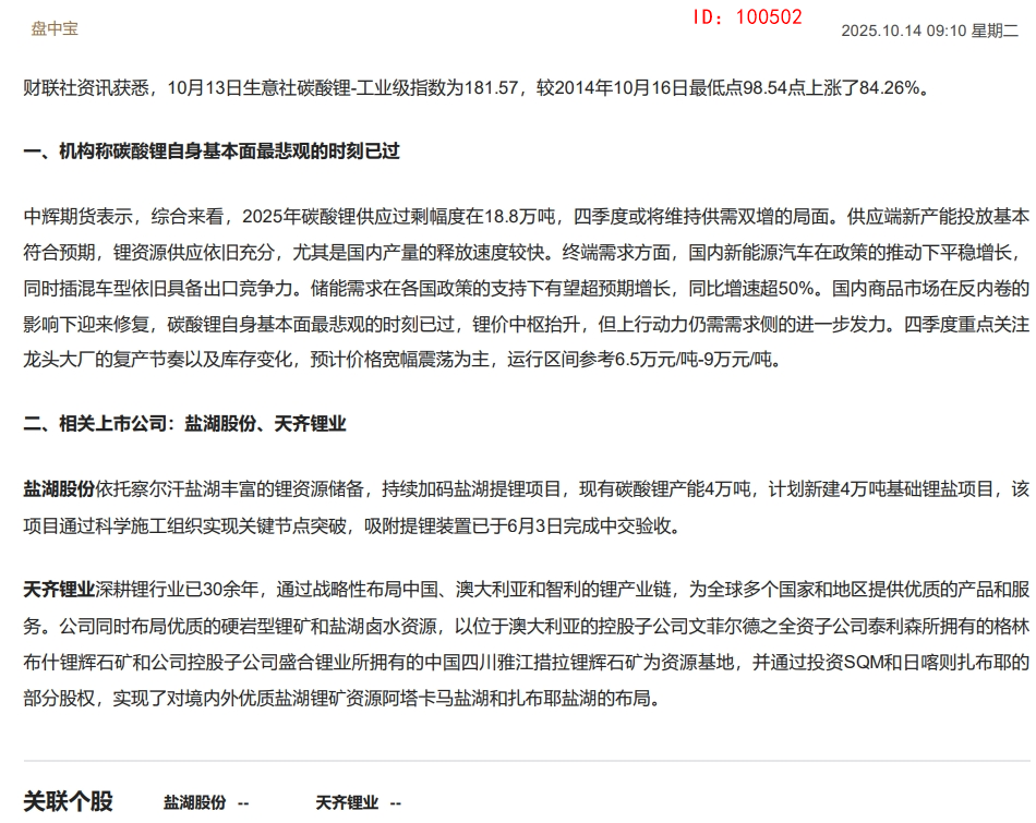 CLSMA to 财联社 10合一 实时滚动更新中文 · 7 days ago09:10 【盘中宝】下游细分需求在政策支持下有望超预期增长,同比增速超50%,机构称该品种自身基本面最悲观时刻已过价格中枢抬升,这家企业新项目实现关键节点突破imagemessage-square0linkfedilinkarrow-up11arrow-down10