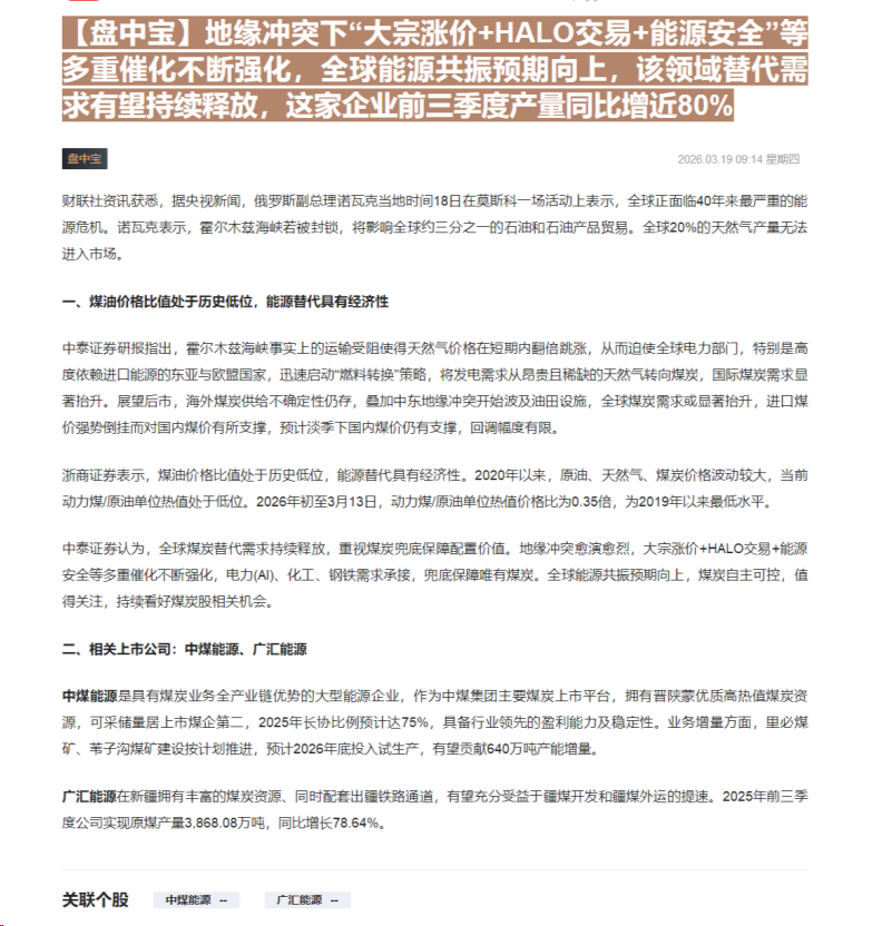 CLSMA to 财联社 10合一 实时滚动更新中文 · 5 hours ago09:14【盘中宝】地缘冲突下“大宗涨价+HALO交易+能源安全”等多重催化不断强化,全球能源共振预期向上,该领域替代需求有望持续释放,这家企业前三季度产量同比增近80%imagemessage-square0linkfedilinkarrow-up11arrow-down10