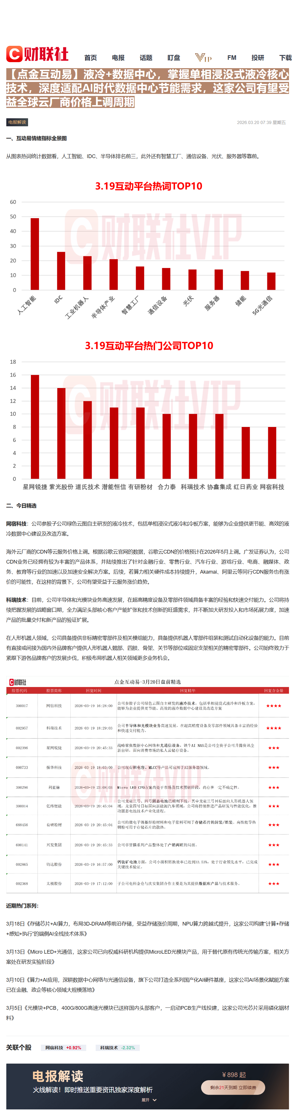 CLSMA to 财联社 10合一 实时滚动更新中文 · 6 hours ago07:39【点金互动易】液冷+数据中心,掌握单相浸没式液冷核心技术,深度适配AI时代数据中心节能需求,这家公司有望受益全球云厂商价格上调周期imagemessage-square0linkfedilinkarrow-up11arrow-down10
