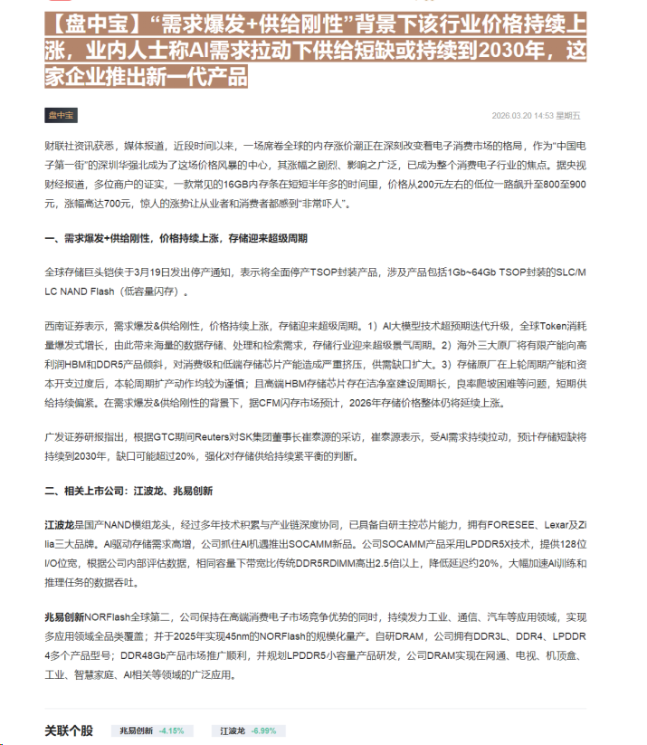 CLSMA to 财联社 10合一 实时滚动更新中文 · 3 hours ago14:53【盘中宝】“需求爆发+供给刚性”背景下该行业价格持续上涨,业内人士称AI需求拉动下供给短缺或持续到2030年,这家企业推出新一代产品imagemessage-square0linkfedilinkarrow-up11arrow-down10