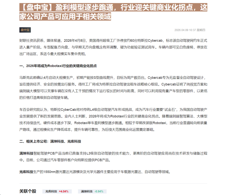 CLSMA to 财联社 10合一 实时滚动更新中文 · 3 hours ago10:37【盘中宝】盈利模型逐步跑通,行业迎关键商业化拐点,这家公司产品可应用于相关领域imagemessage-square0linkfedilinkarrow-up11arrow-down10