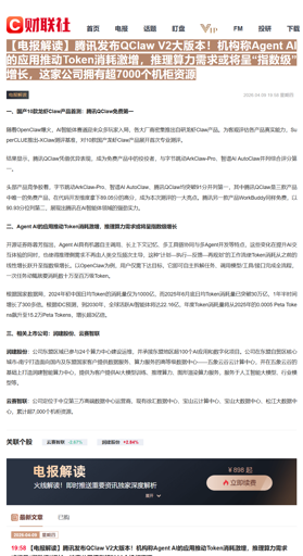 CLSMA to 财联社 10合一 实时滚动更新中文 · 2 hours ago19:58【电报解读】腾讯发布QClaw V2大版本!机构称Agent AI的应用推动Token消耗激增,推理算力需求或将呈“指数级”增长,这家公司拥有超7000个机柜资源imagemessage-square0linkfedilinkarrow-up11arrow-down10