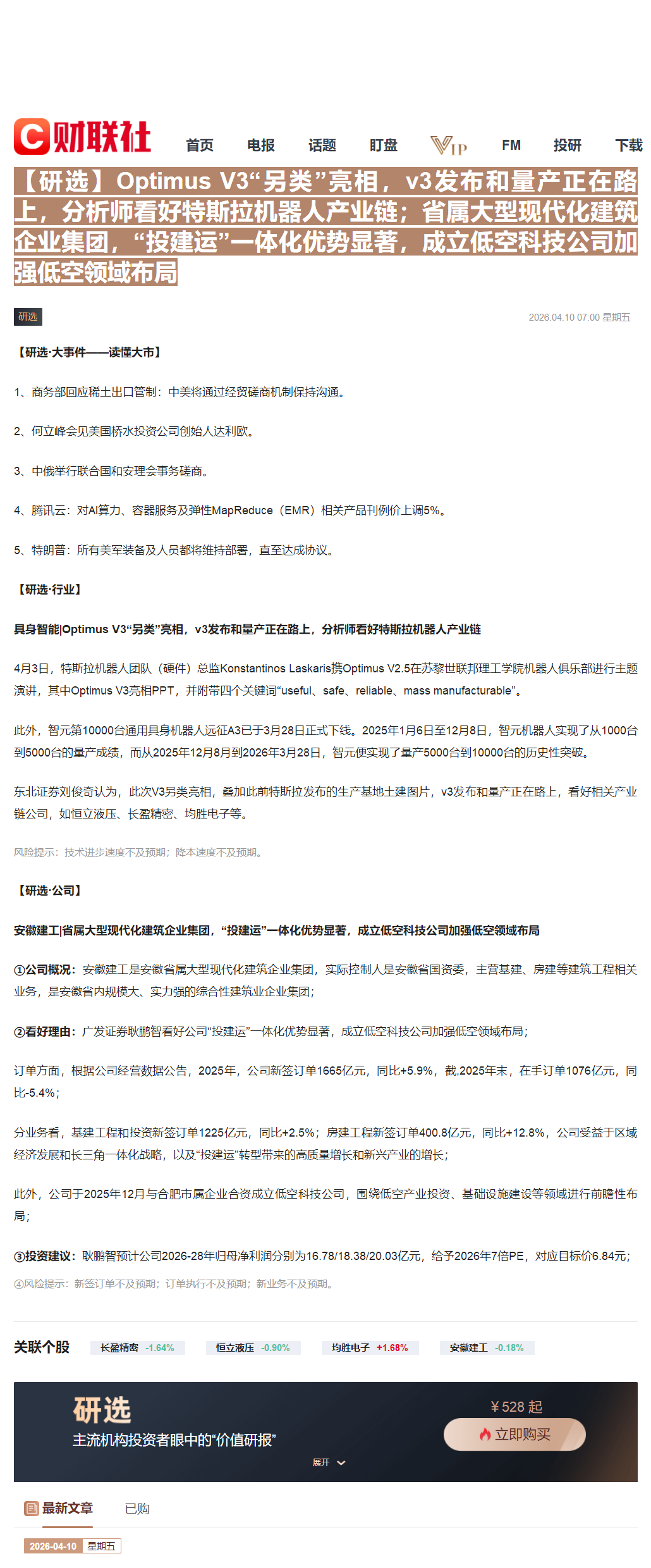 arrow-up11arrow-down1image07:00【研选】Optimus V3“另类”亮相,v3发布和量产正在路上,分析师看好特斯拉机器人产业链;省属大型现代化建筑企业集团,“投建运”一体化优势显著,成立低空科技公司加强低空领域布局CLSMA to 财联社 10合一 实时滚动更新中文 · 5 hours agomessage-square0linkfedilink
