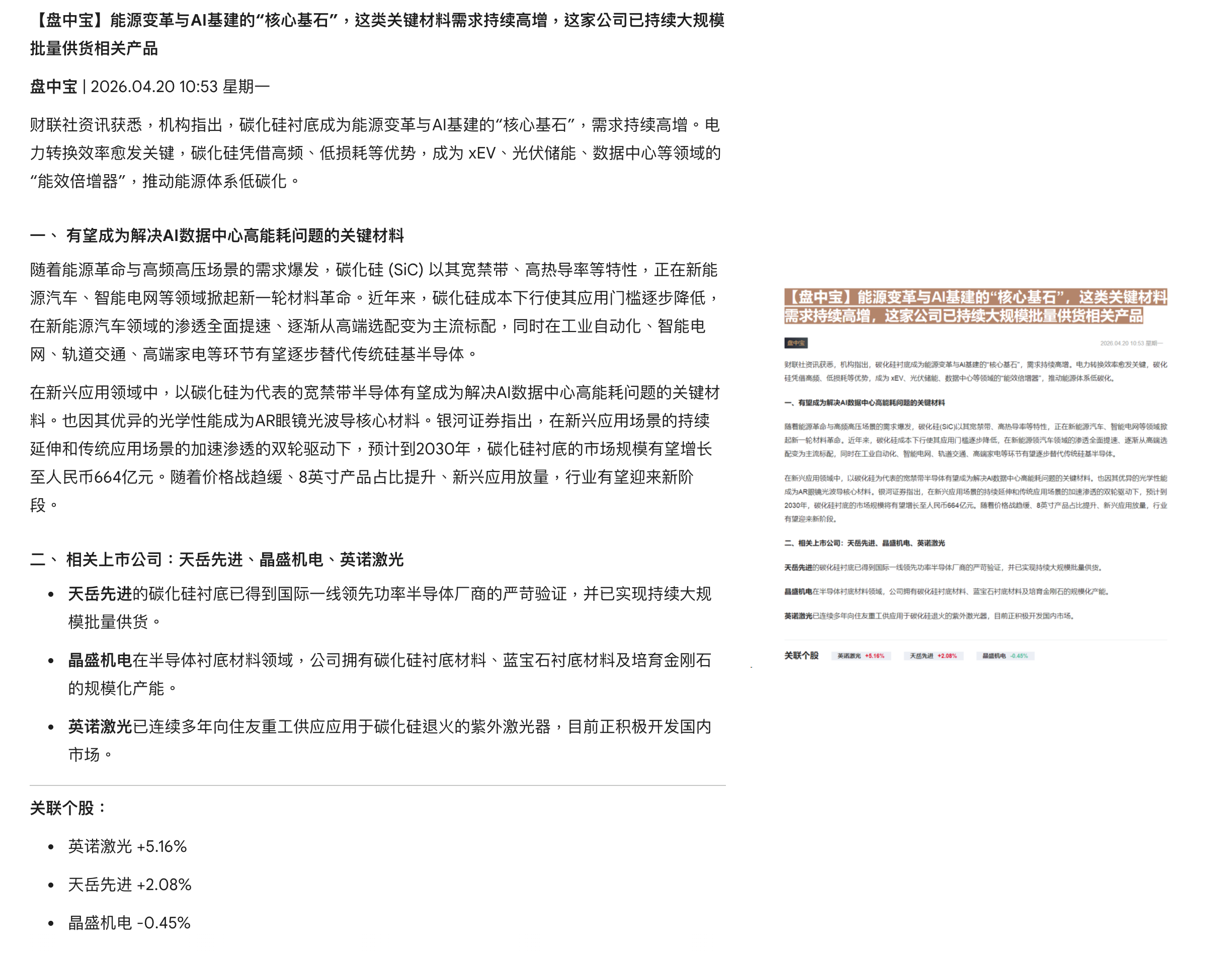 arrow-up11arrow-down1image10:53【盘中宝】能源变革与AI基建的“核心基石”,这类关键材料需求持续高增,这家公司已持续大规模批量供货相关产品CLSMA to 财联社 10合一 实时滚动更新中文 · 7 hours agomessage-square0linkfedilink