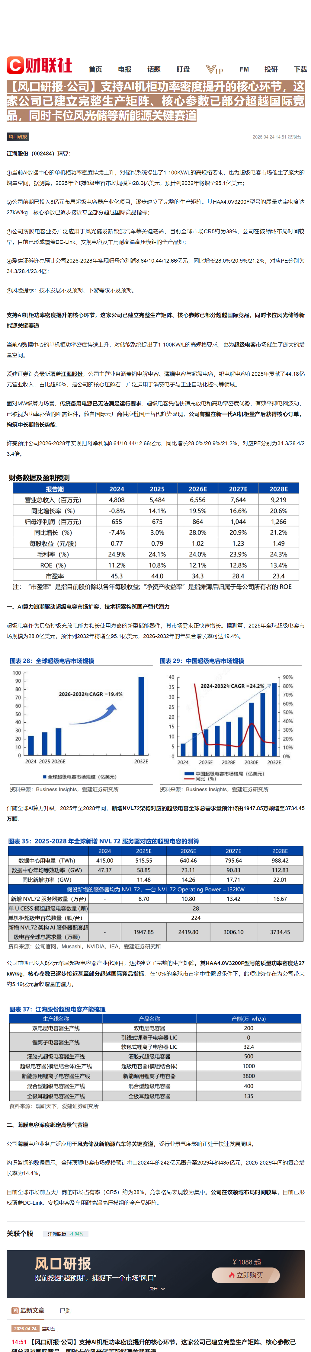 CLSMA to 财联社 10合一 实时滚动更新中文 · 7 hours ago14:51【风口研报·公司】支持AI机柜功率密度提升的核心环节,这家公司已建立完整生产矩阵、核心参数已部分超越国际竞品,同时卡位风光储等新能源关键赛道imagemessage-square0linkfedilinkarrow-up11arrow-down10