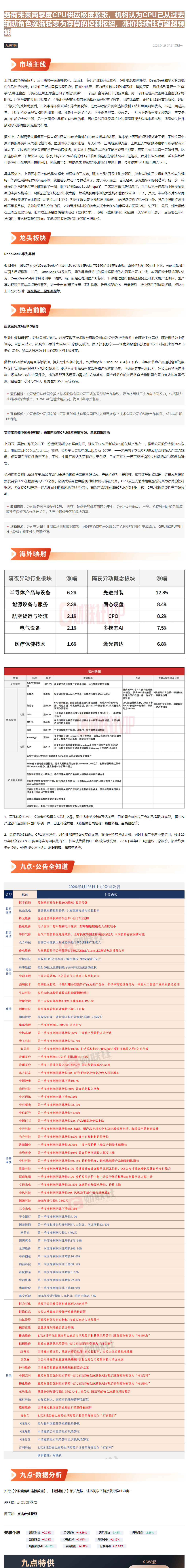 CLSMA to 财联社 10合一 实时滚动更新中文 · 2 hours ago07:51【九点特供】超聚变完成A股IPO辅导;英特尔告知中国云服务商未来两季度CPU供应极度紧张,机构认为CPU已从过去辅助角色逐渐转变为存算的控制枢纽,涨价持续性有望超预期imagemessage-square0linkfedilinkarrow-up11arrow-down10