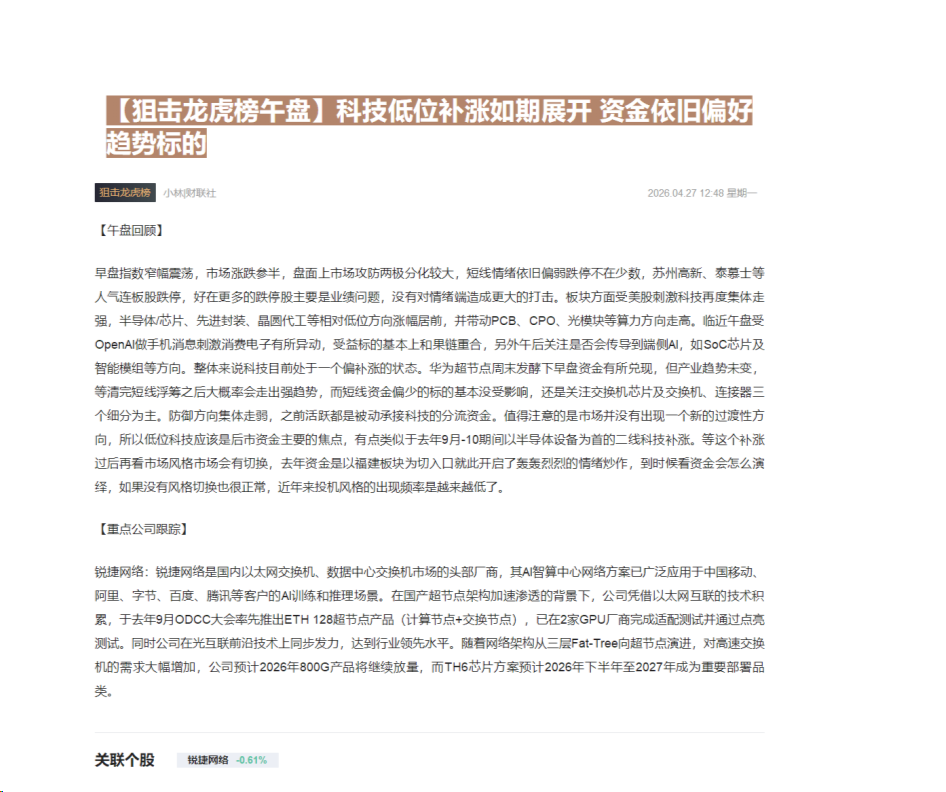 CLSMA to 财联社 10合一 实时滚动更新中文 · 2 hours ago12:48【狙击龙虎榜午盘】科技低位补涨如期展开 资金依旧偏好趋势标的imagemessage-square0linkfedilinkarrow-up11arrow-down10