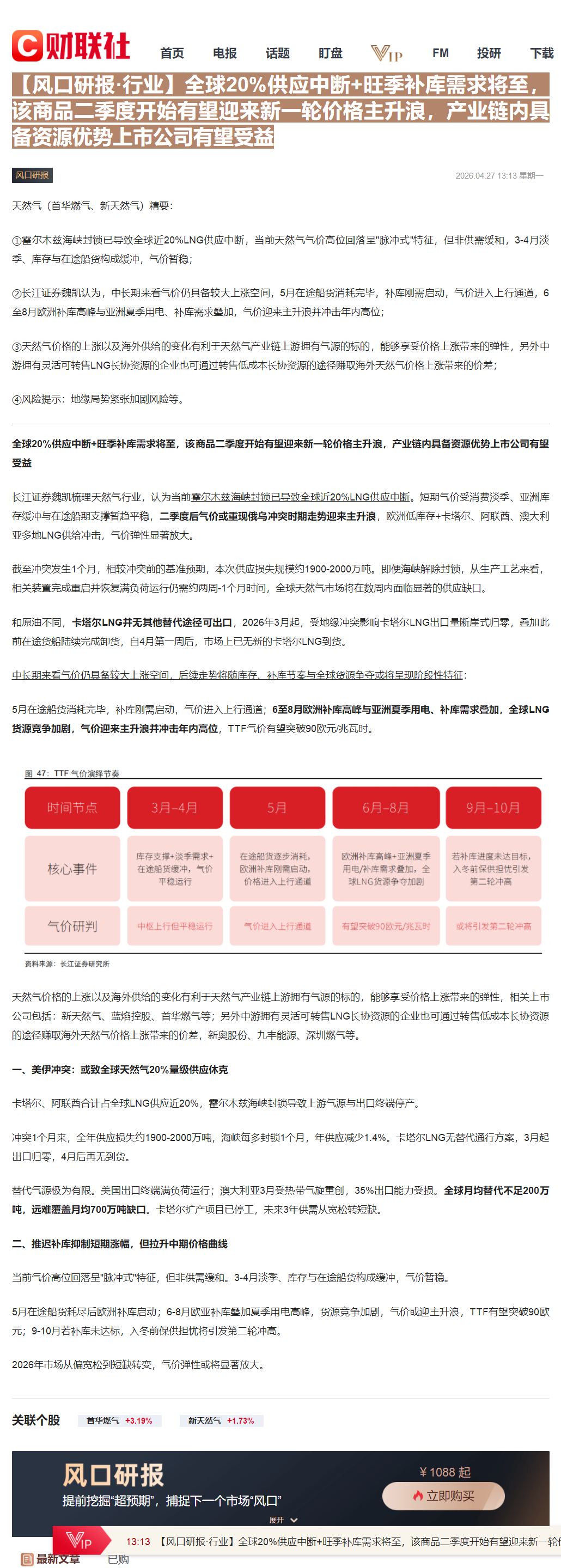 CLSMA to 财联社 10合一 实时滚动更新中文 · 4 hours ago13:13【风口研报·行业】全球20%供应中断+旺季补库需求将至,该商品二季度开始有望迎来新一轮价格主升浪,产业链内具备资源优势上市公司有望受益imagemessage-square0linkfedilinkarrow-up11arrow-down10