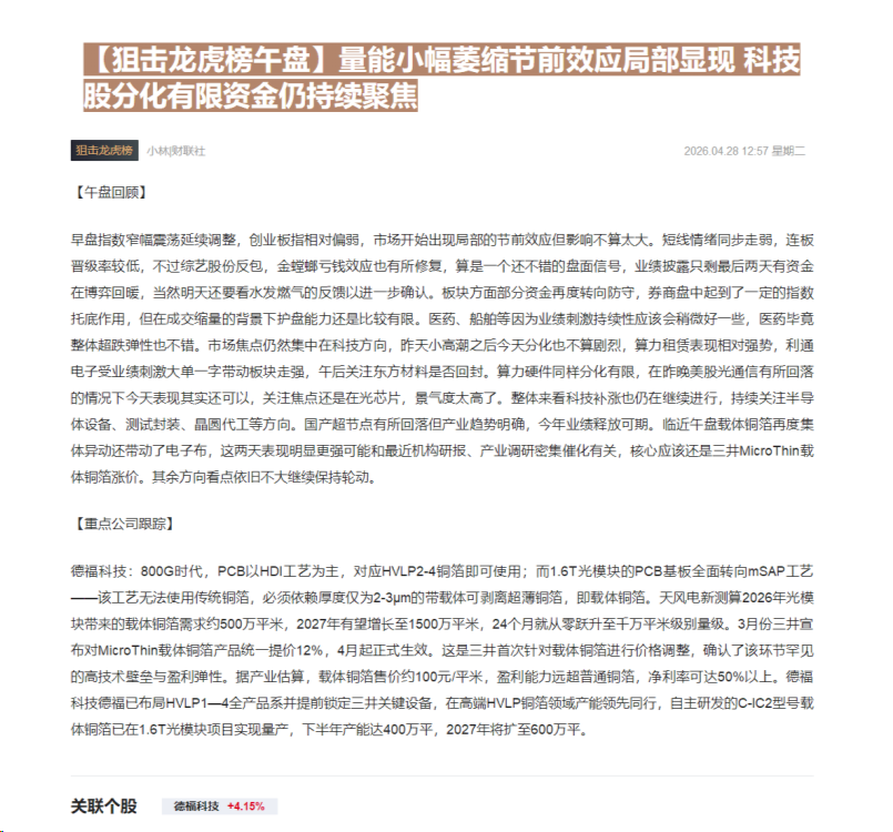 CLSMA to 财联社 10合一 实时滚动更新中文 · 2 hours ago12:57【狙击龙虎榜午盘】量能小幅萎缩节前效应局部显现 科技股分化有限资金仍持续聚焦imagemessage-square0linkfedilinkarrow-up11arrow-down10