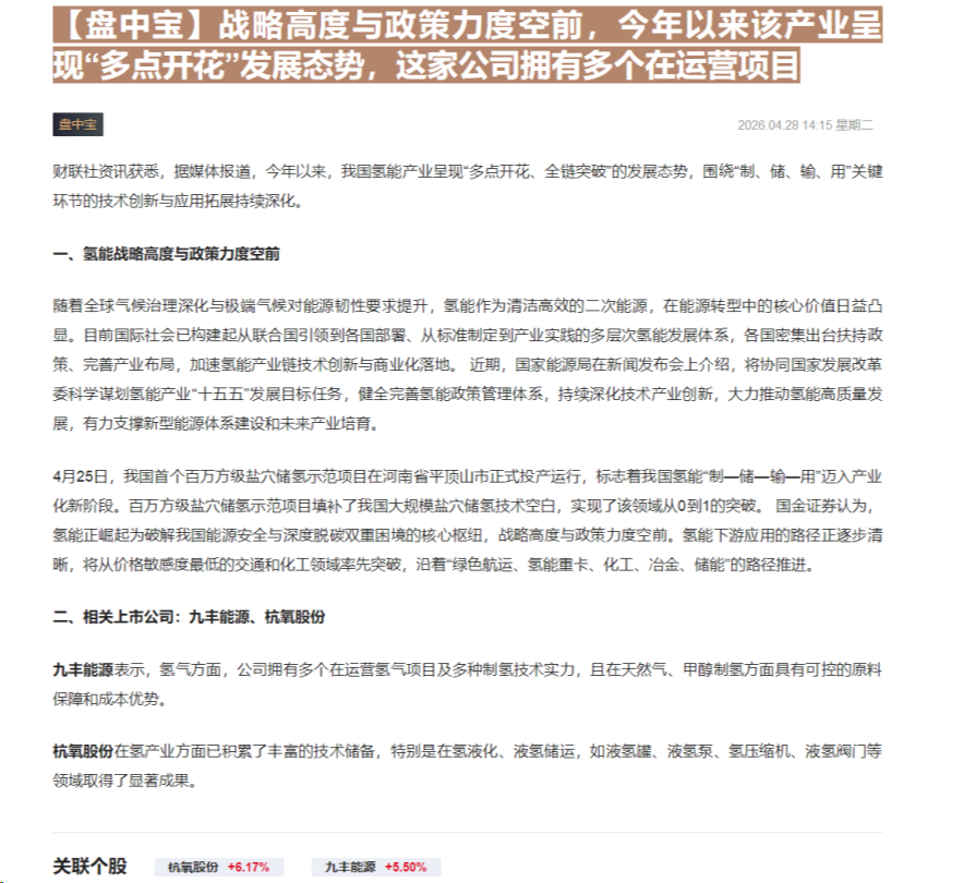 CLSMA to 财联社 10合一 实时滚动更新中文 · 3 hours ago14:15【盘中宝】战略高度与政策力度空前,今年以来该产业呈现“多点开花”发展态势,这家公司拥有多个在运营项目imagemessage-square0linkfedilinkarrow-up11arrow-down10