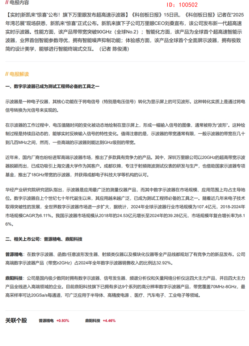 CLSMA to 财联社 10合一 实时滚动更新中文 · 5 days ago16:40 【电报解读】新凯来“惊喜”公布!旗下万里眼发布超高速示波器,机构称数字示波器已成为测试工程师必备的工具之一,这家公司拥有9个系列的高分辨率数字示波器产品imagemessage-square0linkfedilinkarrow-up11arrow-down10
