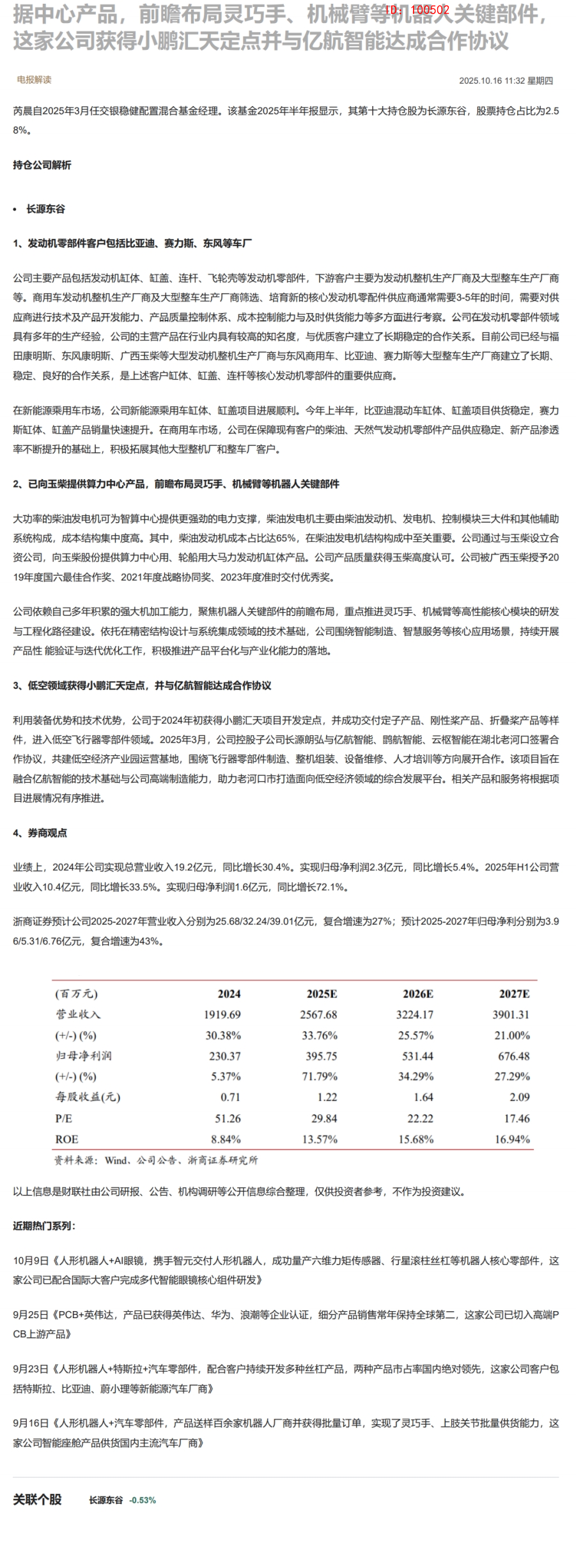 CLSMA to 财联社 10合一 实时滚动更新中文 · edit-27 hours ago11:32 【大佬持仓跟踪】柴发+机器人+低空,核心部件供货玉柴数据中心产品,前瞻布局灵巧手、机械臂等机器人关键部件,这家公司获得小鹏汇天定点并与亿航智能达成合作协议imagemessage-square0linkfedilinkarrow-up11arrow-down10