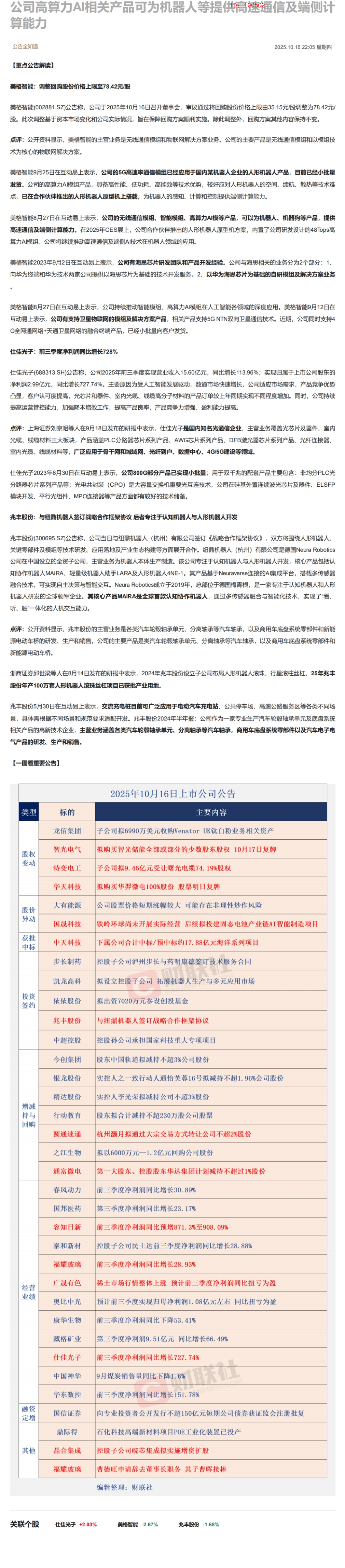 22:05 【公告全知道】人形机器人+华为海思+算力+AI+卫星导航!公司高算力AI相关产品可为机器人等提供高速通信及端侧计算能力